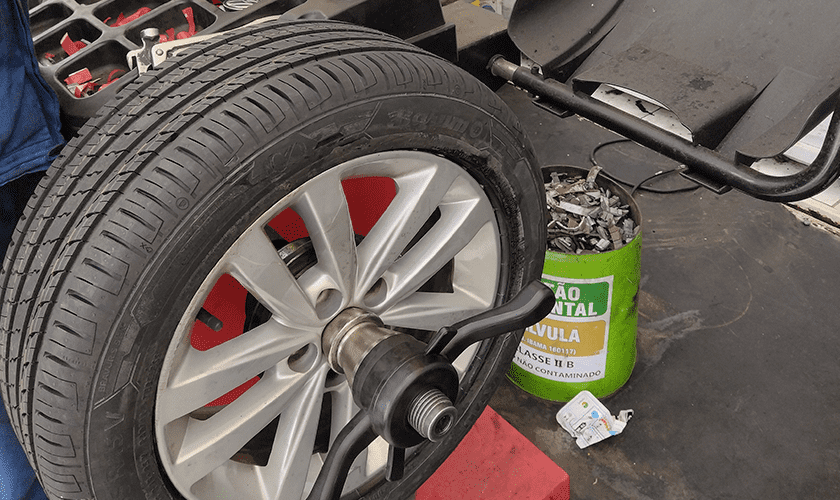 Esse processo envolve a fixação da roda e do pneu em uma máquina de balanceamento, que mede a distribuição de peso e determina onde contrapesos adicionais são necessários. Assim, esses contrapesos são colocados em posições específicas das rodas para compensar o desequilíbrio.